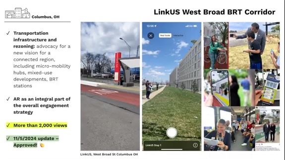 The most effective campaigns combine AR with traditional outreach methods, web-based 3D maps, and other communication tools. In Columbus, embedding AR into a real bus tour created an immersive "trip to the future" that made abstract planning concepts tangible.