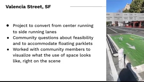 A community advocate organized visualizations for the conversion of Valencia Street from center-running to curbside bike lanes.